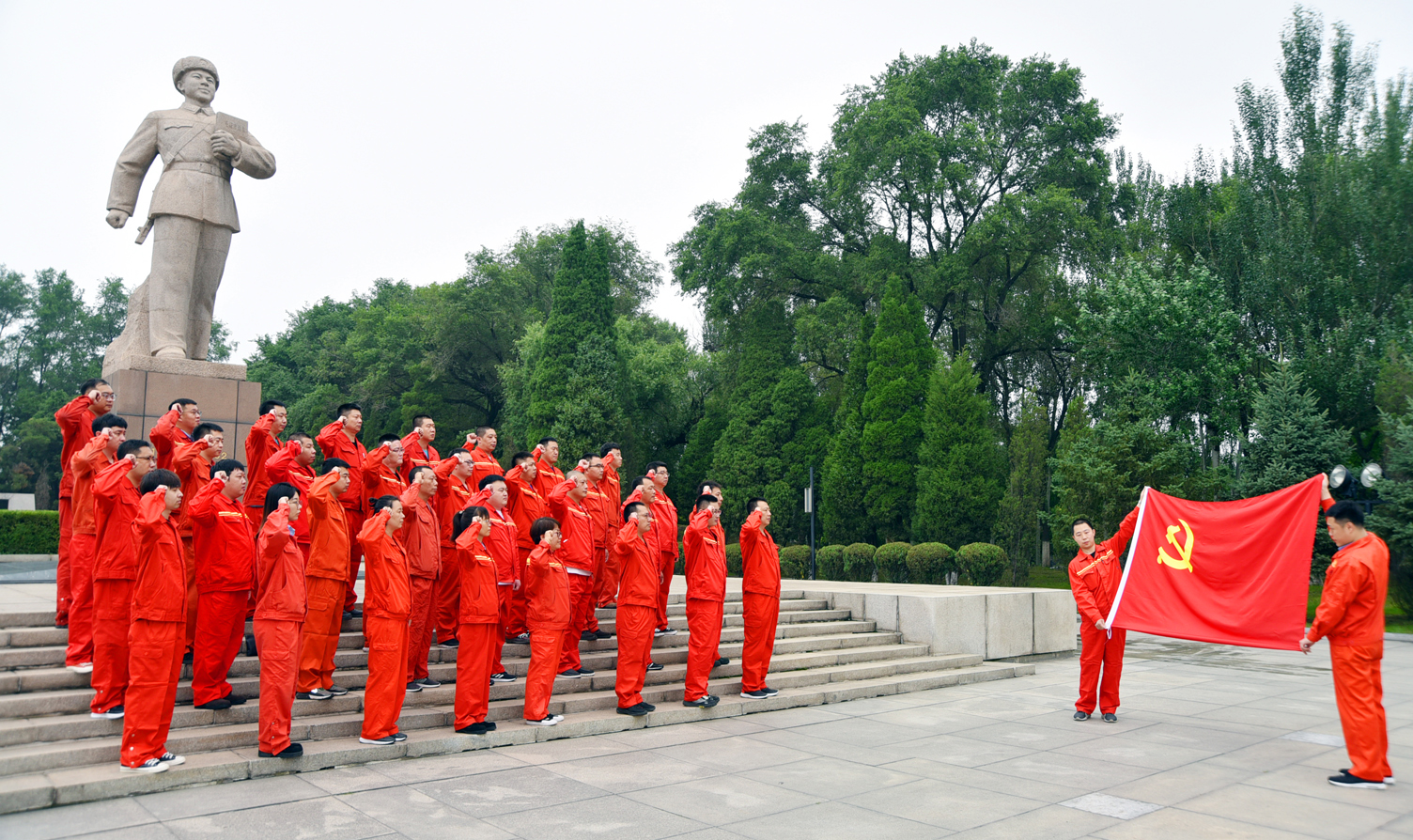 當(dāng)天上午8時(shí)30分,在雷鋒紀(jì)念館雷鋒塑像前,34名新黨員身著整齊的工作服,在莊嚴(yán)的國(guó)際歌聲中整齊列隊(duì)。