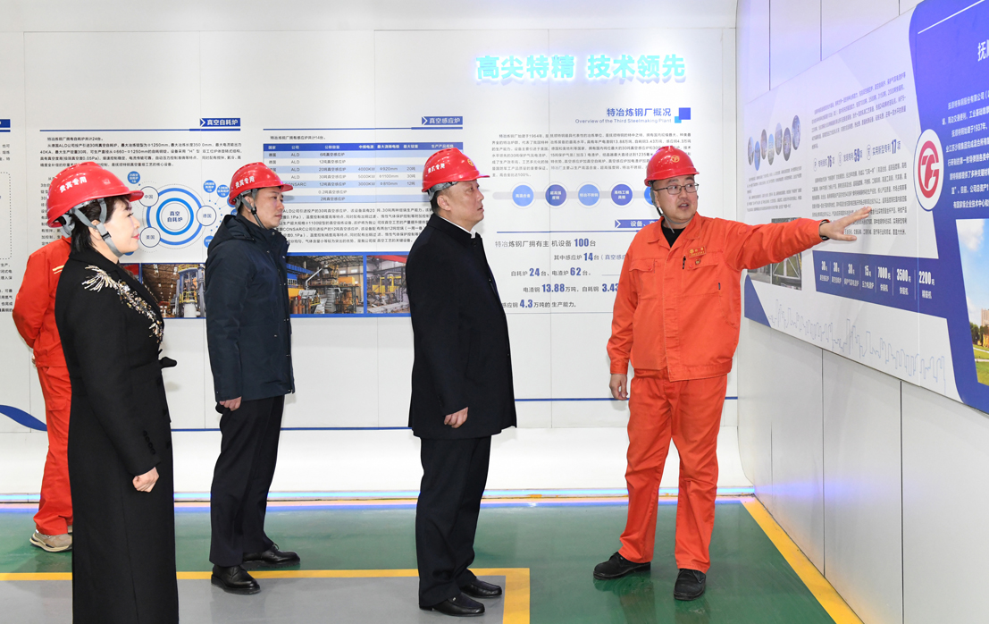 在公司產(chǎn)業(yè)化一期生產(chǎn)現(xiàn)場,胡哲一行觀看了特冶生產(chǎn)裝備,詳細詢問了設備產(chǎn)能、產(chǎn)品質量及技改工程建設等情況。祁勇向胡哲一行詳細介紹了撫順特鋼近年來的生產(chǎn)經(jīng)營、技改項目建設和發(fā)展新質生產(chǎn)力等方面情況。當?shù)弥獡犴樚劁搱猿帧疤劁摳亍卑l(fā)展理念,在現(xiàn)階段鋼鐵行業(yè)市場低迷的情況下,企業(yè)生產(chǎn)經(jīng)營保持了良好勢頭,新建的特冶技改項目已經(jīng)陸續(xù)投產(chǎn),特冶產(chǎn)能不斷增加時,胡哲一行對撫順特鋼的快速、高質量發(fā)展給予了高度評價。他表示,撫順特鋼的高質量發(fā)展振奮人心,希望撫順特鋼繼續(xù)保持良好的發(fā)展勢頭,圍繞發(fā)展新質生產(chǎn)力持續(xù)發(fā)力,為撫順地方經(jīng)濟發(fā)展再做新貢獻,撫順市委、市政府將持續(xù)優(yōu)化營商環(huán)境,全力支持撫順特鋼的高質量發(fā)展。