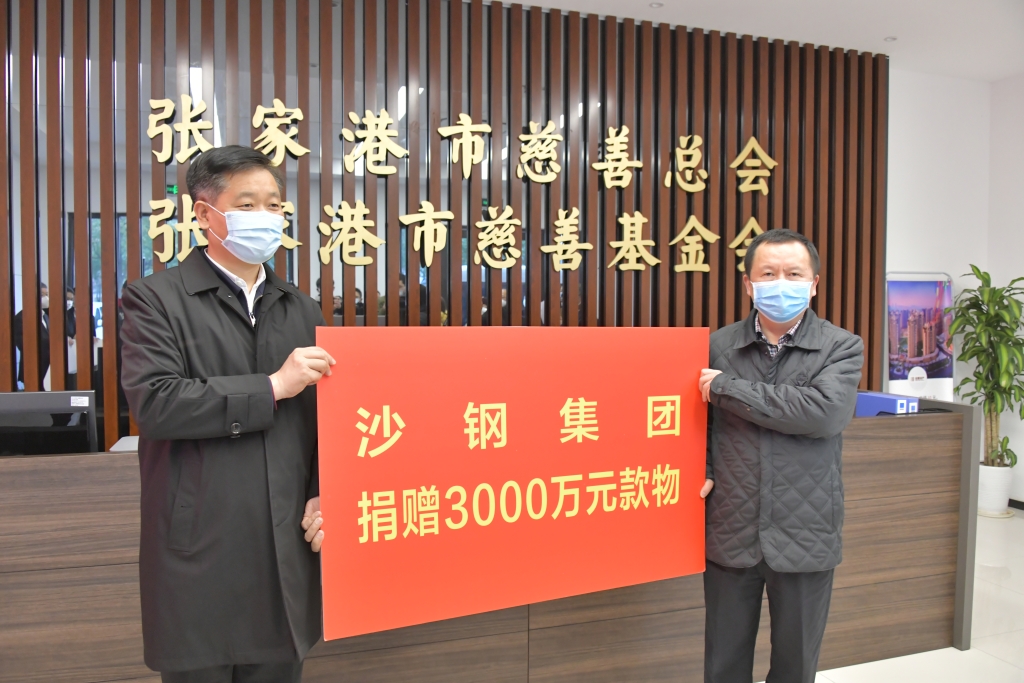 一方有難,八方支援。2月11日下午,在市慈善總會舉辦的抗擊新型冠狀病毒肺炎疫情捐贈儀式上,沙鋼集團捐贈3000萬元(2000萬元資金和1000萬元防疫物資)全力支持鄂、蘇抗疫。