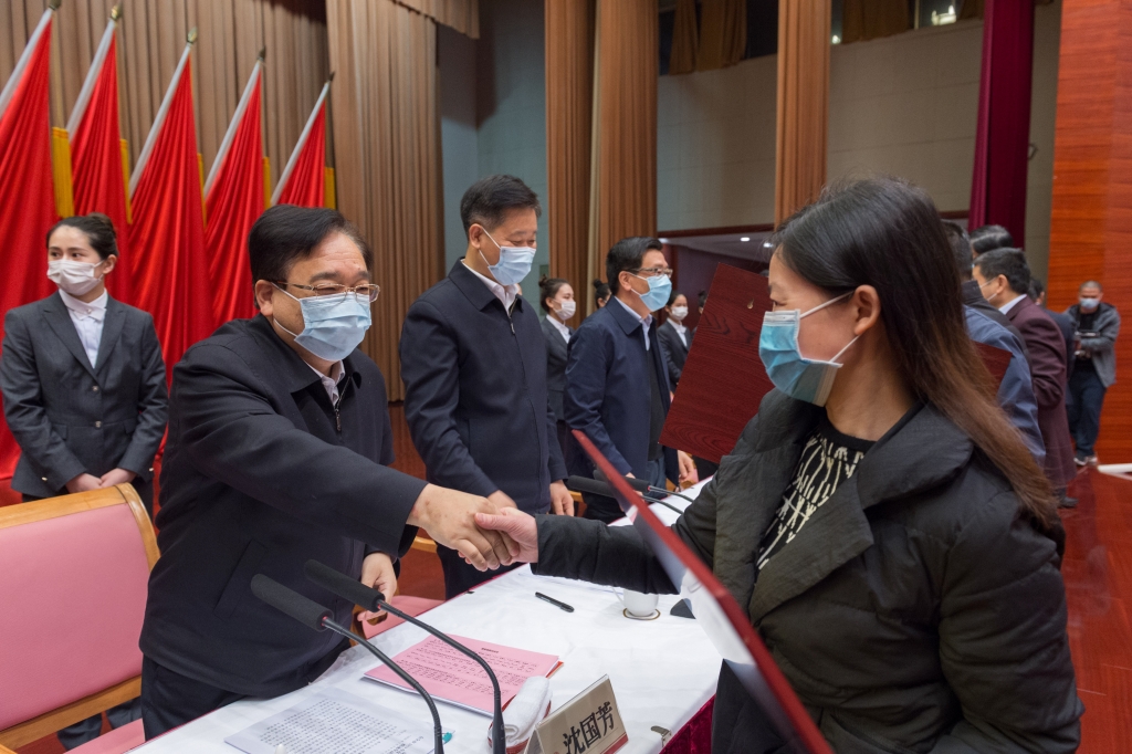 沈國芳向優(yōu)秀企業(yè)、先進(jìn)單位和個(gè)人表示祝賀,向奮戰(zhàn)在疫情防控一線、經(jīng)濟(jì)社會發(fā)展一線的全體黨員干部表示衷心感謝、致以崇高敬意。他指出,奮進(jìn)的道路上需要榜樣,趕超的征途中離不開先鋒。樹立“好榜樣”,就是為了向先進(jìn)學(xué)習(xí)、向標(biāo)桿看齊,延續(xù)“萬眾一心加油干”的旺盛勢頭;進(jìn)行“大動員”,就是為了號召全市上下奮力拼搏、銳意進(jìn)取,以“快馬加鞭未下鞍”的昂揚(yáng)姿態(tài),共同點(diǎn)燃“開放再出發(fā)”的火熱激情,全面掀起“項(xiàng)目提速年”的澎湃熱潮。